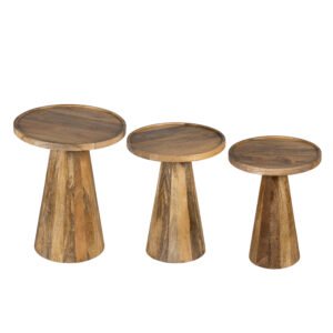 Deze prachtige set van 2 bijzettafels van massief mangohout is een echte must-have voor elk interieur. Verkrijgbaar in drie kleuren: