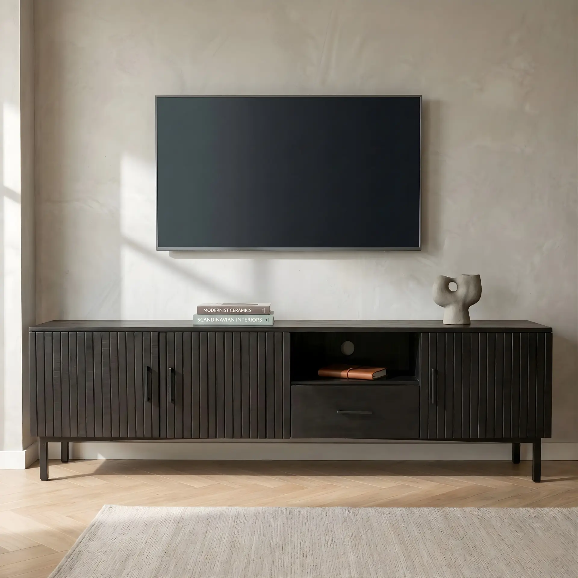 Afmetingen: 160 cm x 45 cm x 220 cm (B x D x H) – een imposant meubel dat perfect is voor grotere woonkamers of eetkamers waar opbergruimte én uitstraling hand in hand gaan.