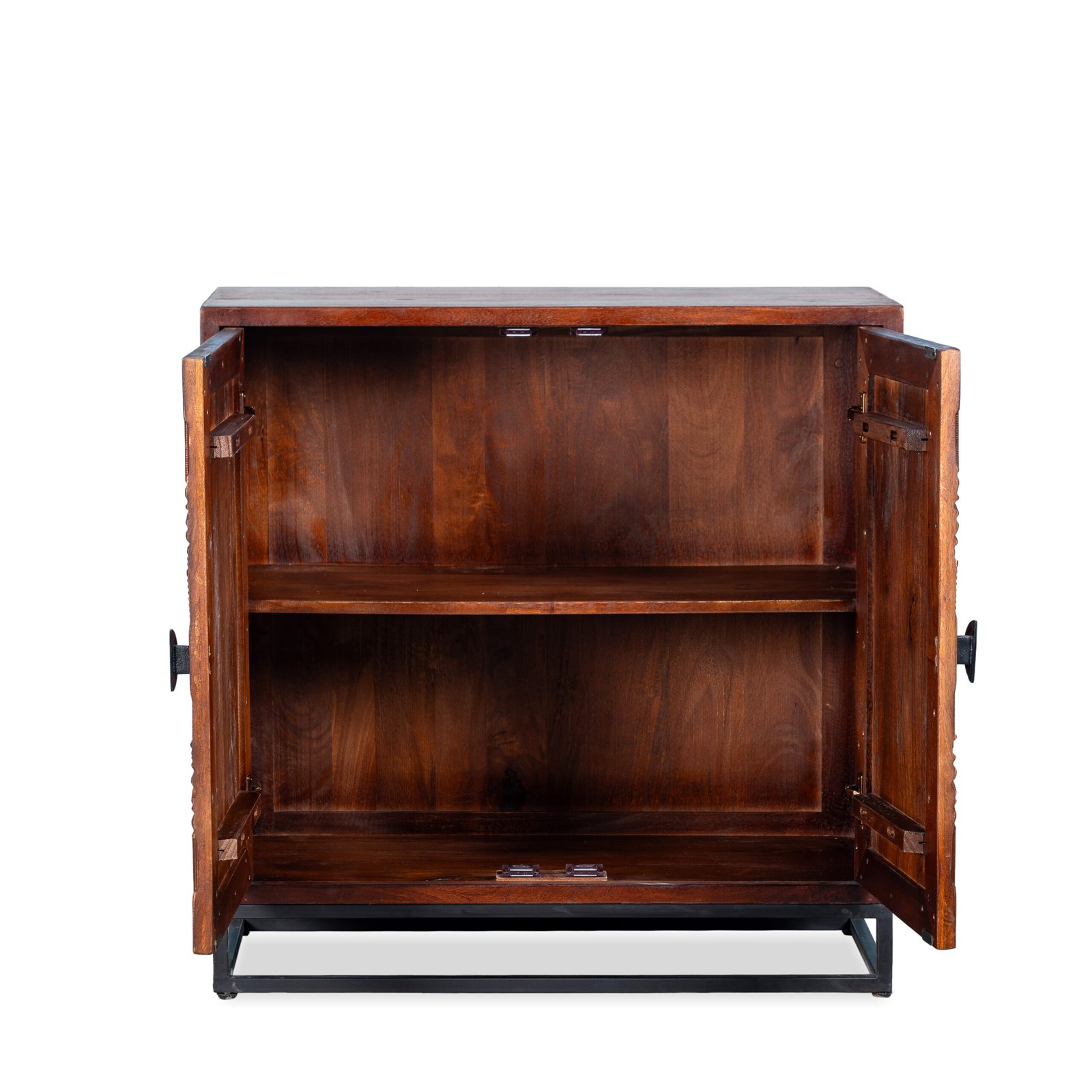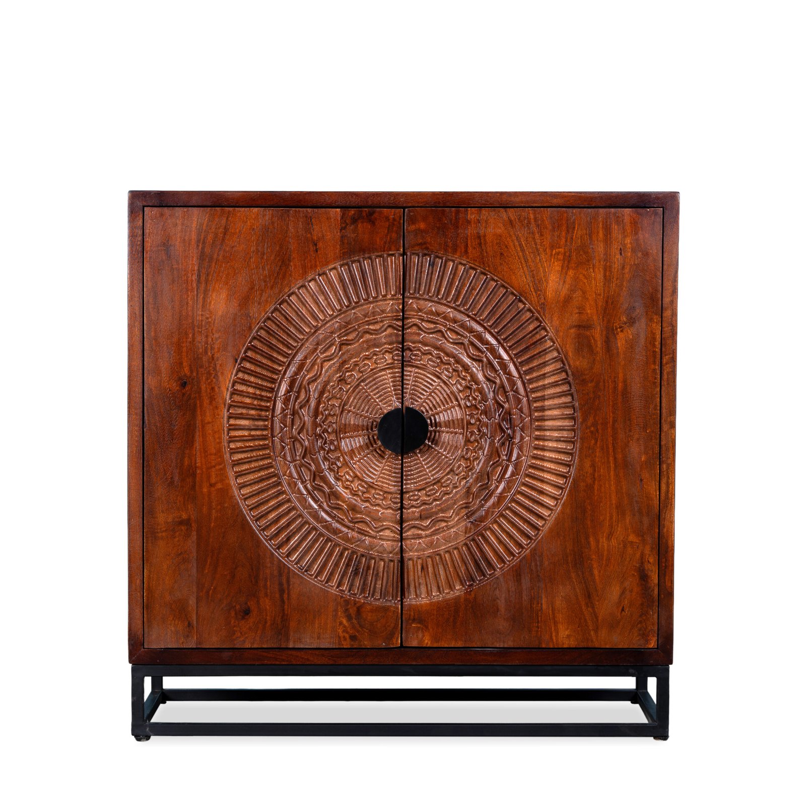 Materiaal: massief mangohout met metalen accenten – duurzaam, robuust en voorzien van unieke houtnerfpatronen die elk dressoir onderscheidend maken.