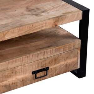 Materiaal: massief mangohout met metalen accenten – duurzaam, stevig en uniek door de natuurlijke houtnerf.
