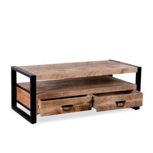 Salontafel Guus van BLenS-furniture is het perfecte stoere en warme middelpunt voor jouw woonkamer, gemaakt van robuust massief mangohout met een subtiele industriële twist. Deze salontafel combineert functionaliteit en karakter in één prachtig meubelstuk dat elke zithoek direct een natuurlijke uitstraling geeft.