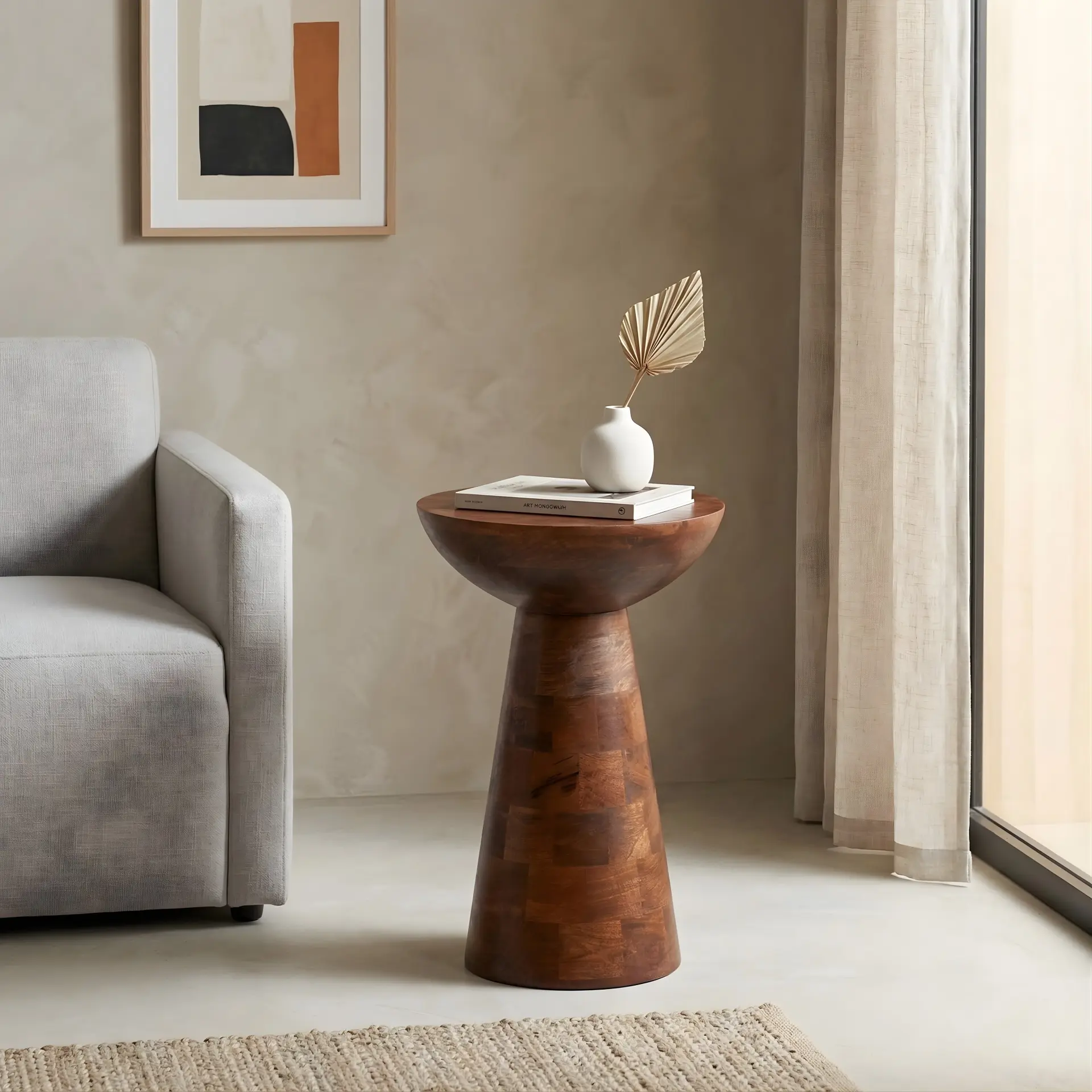 Onderhoud van mangohout is eenvoudig: regelmatig afnemen met een zachte doek en af en toe een lichte behandeling met houtolie beschermt het hout tegen kringen en vocht.