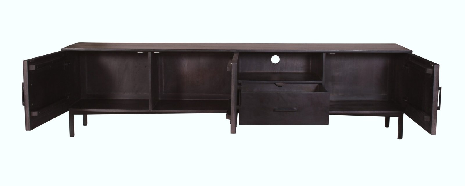 TV Meubel Napoli 210cm Zwart van BLenS-Furniture is een compact tv meubel van mangohout.