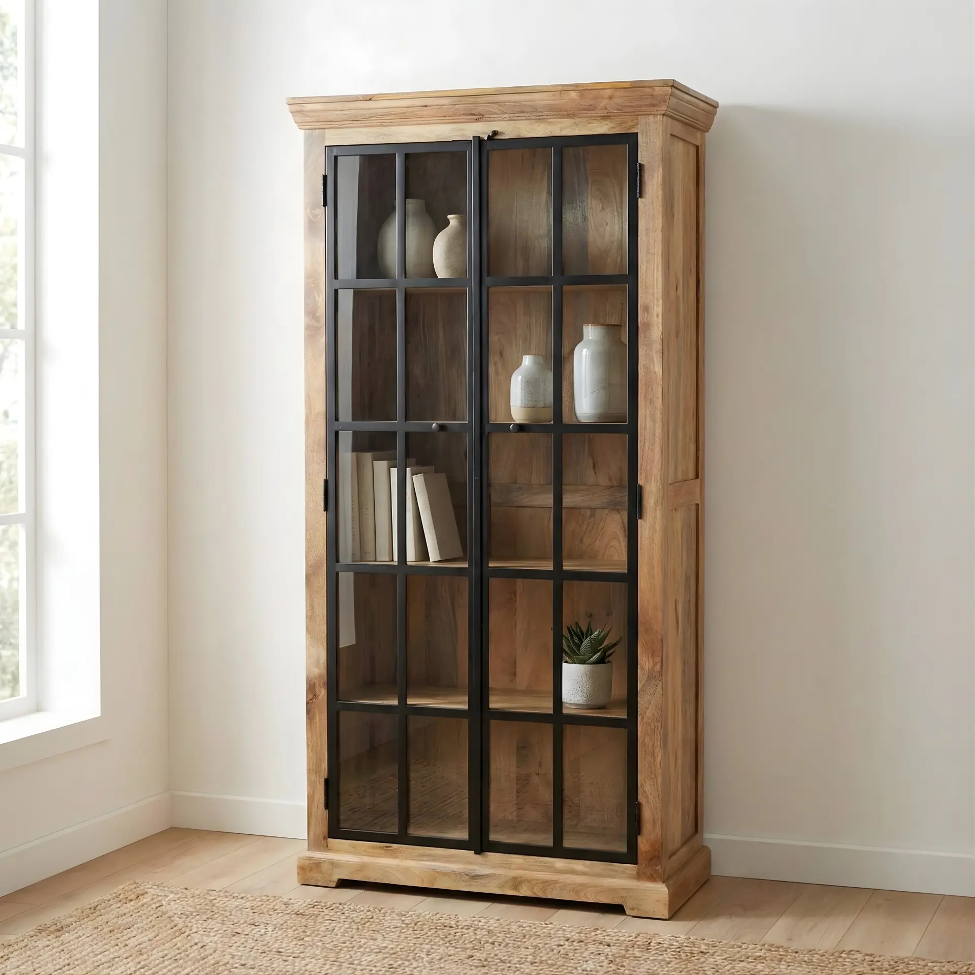 Waarom kiezen voor deze mangohouten vitrinekast?